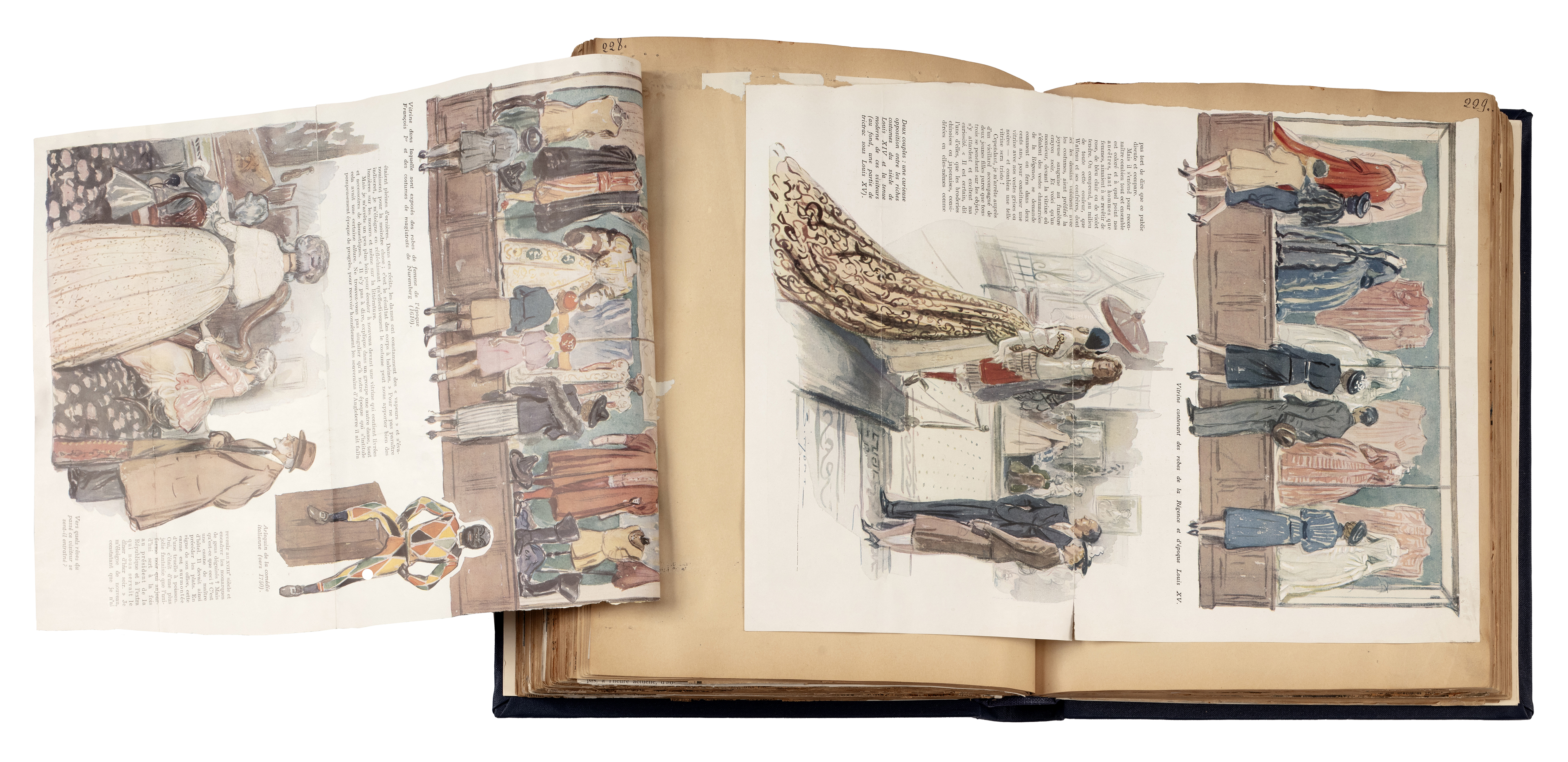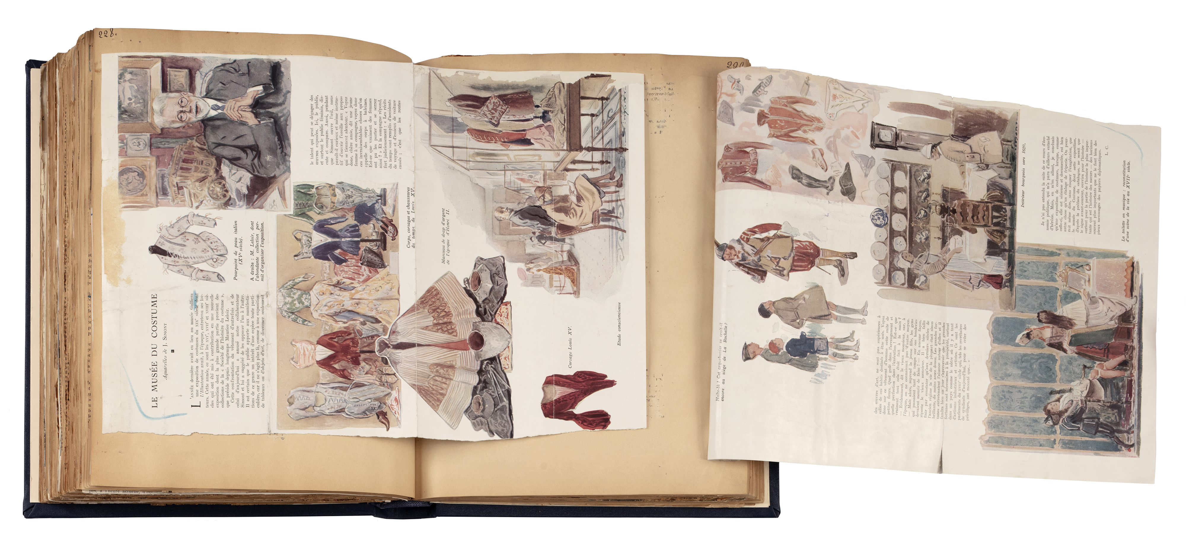 Livre de recueil des articles de presse pour l'exposition Costumes d'autrefois. XVIe, XVIIe, XVIIIe siècles
