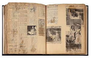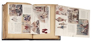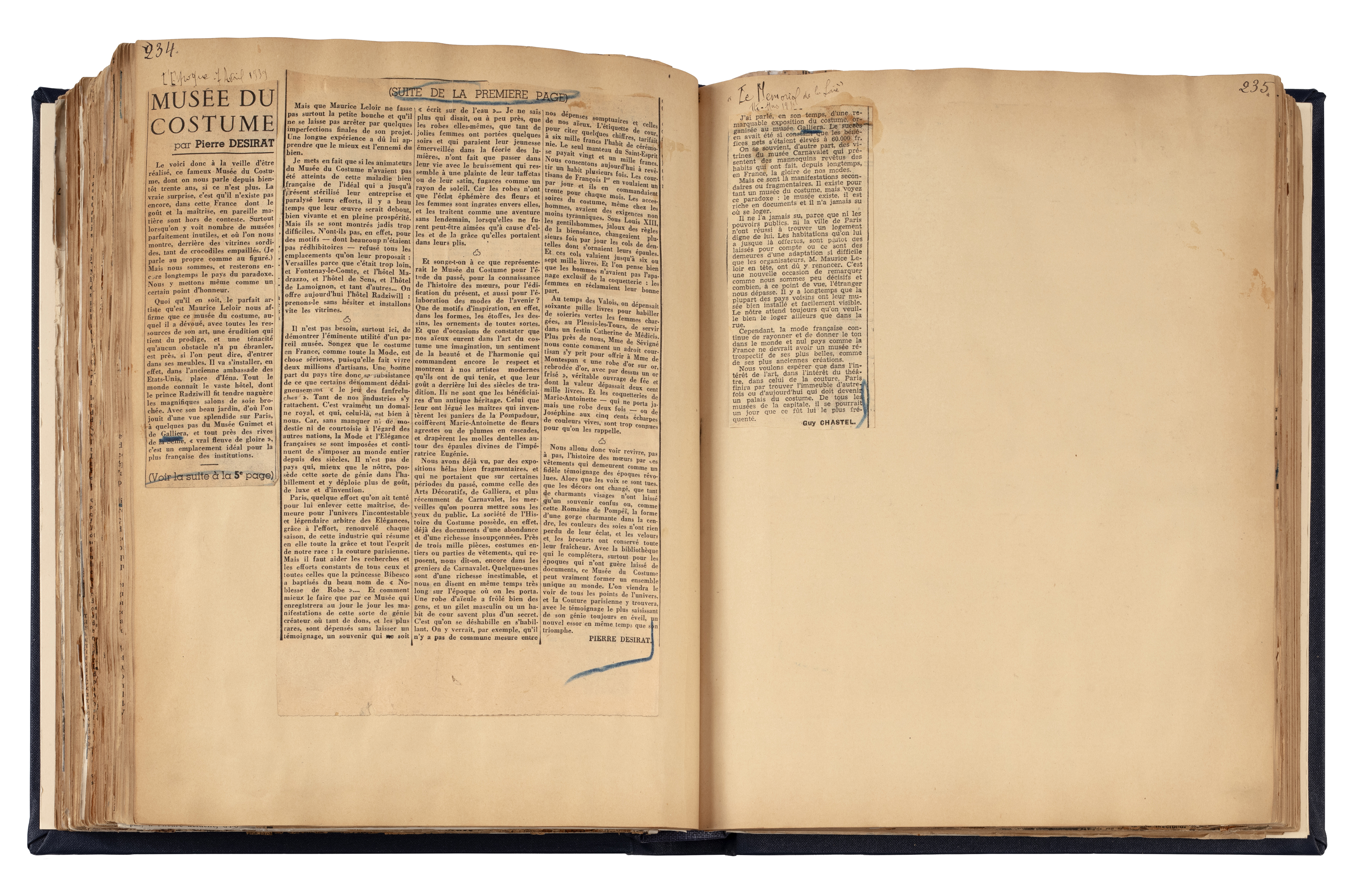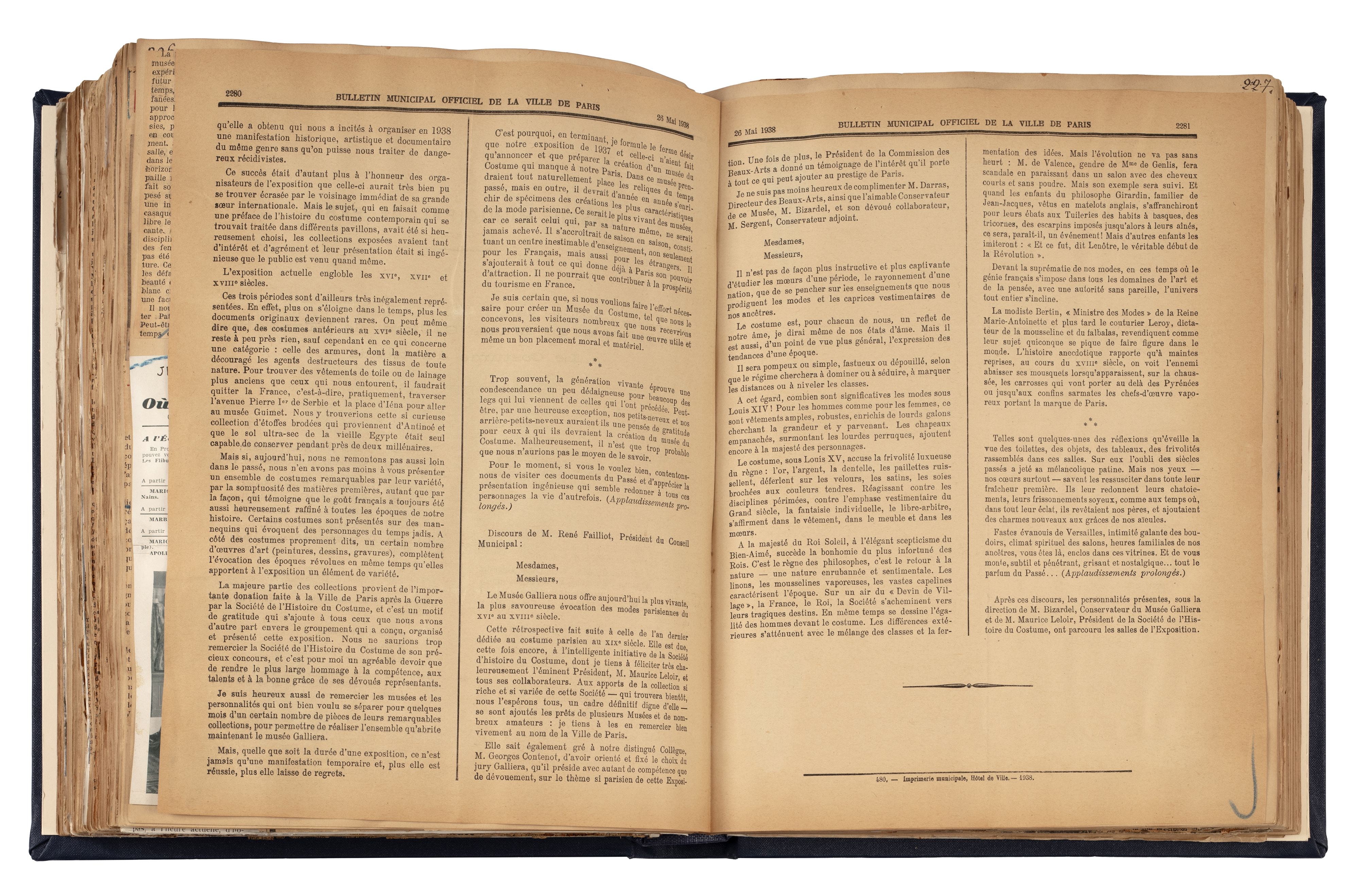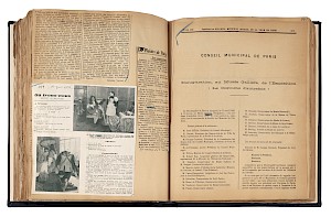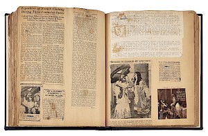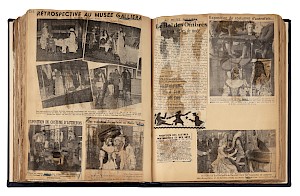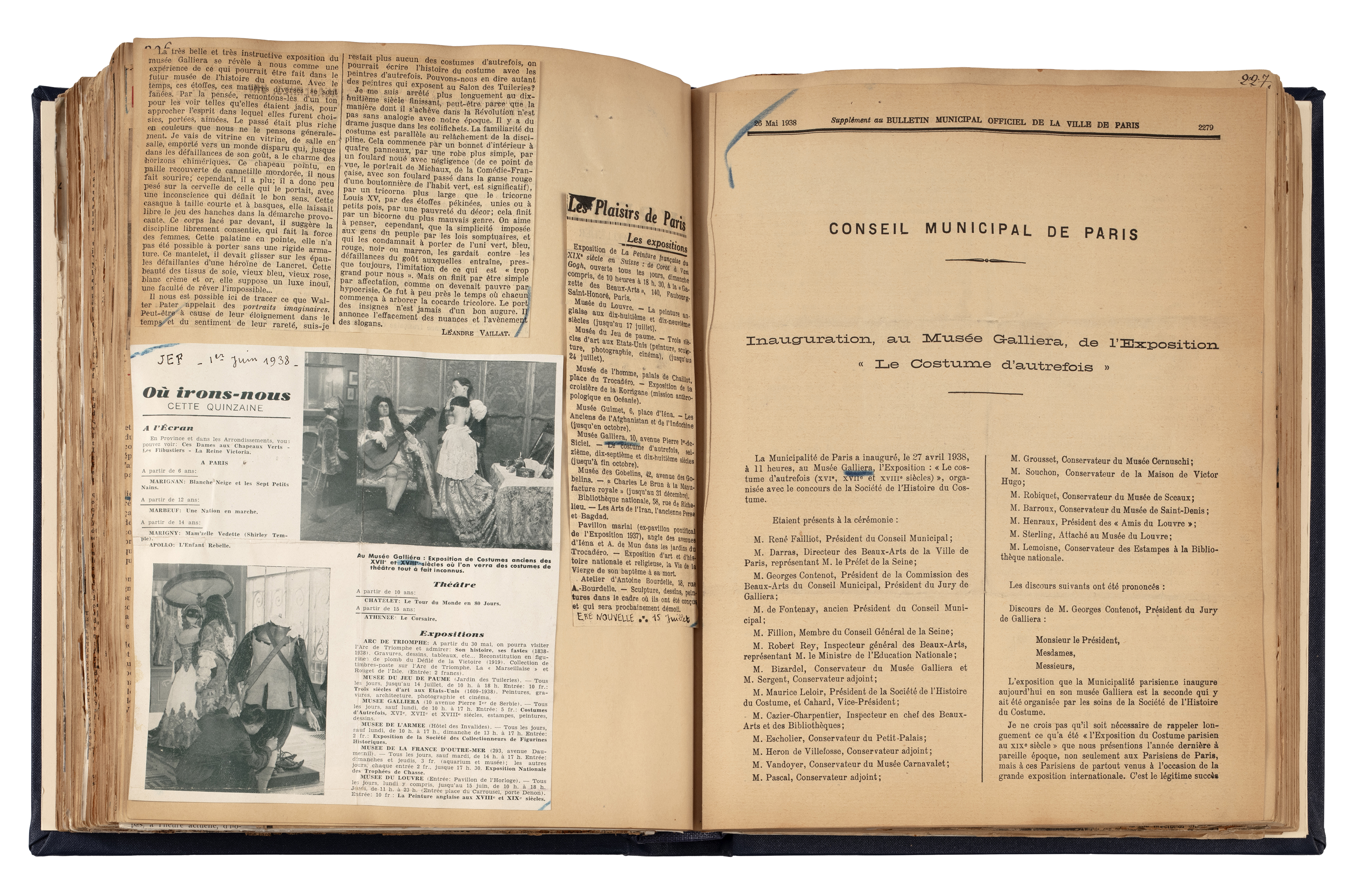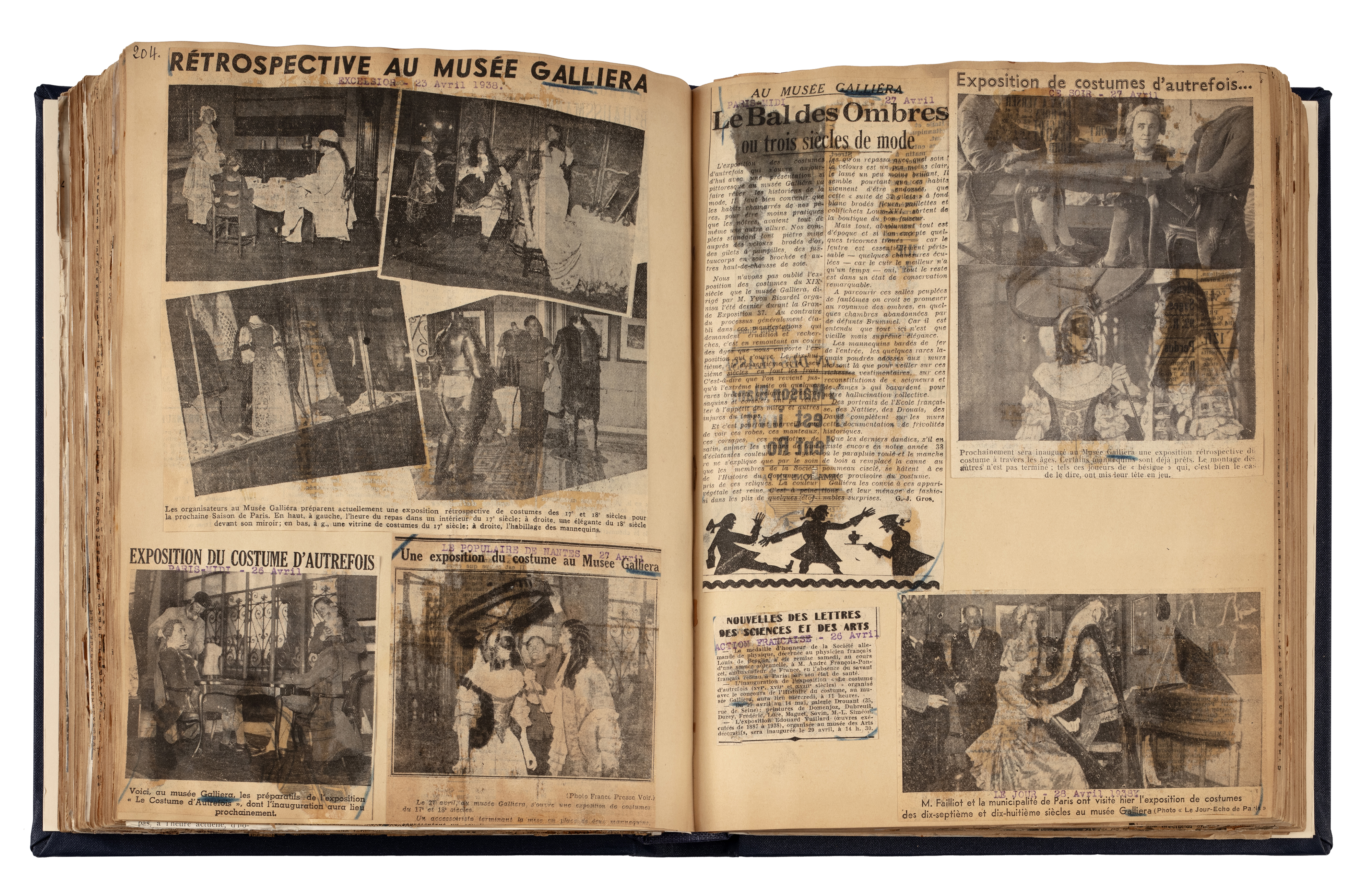Livre de recueil des articles de presse pour l'exposition Costumes d'autrefois. XVIe, XVIIe, XVIIIe siècles